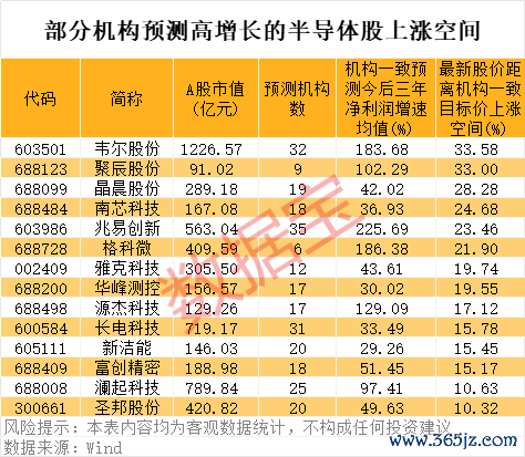 以12月2日收盘价与机构一致预测想法价比拟,14股飞腾空间逾10%。韦尔股份、聚辰股份、晶晨股份、南芯科技、兆易翻新、格科微飞腾空间在20%以上。